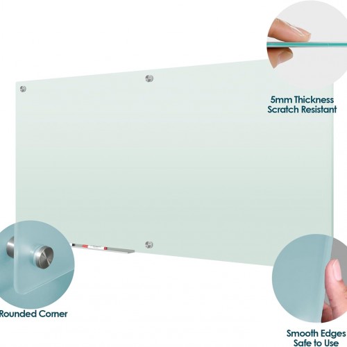 J&J worldwide Glass Whiteboard 6′ x 3′, Frosted Glass Dry Erase Board Non-Magnetic, Semi-Transparent, Includes Markers, Marker Tray, Eraser for Wall, Office, Home, School