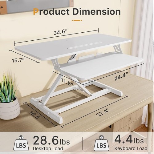 JOY worker Standing Desk Converter, 35″ Wide Height Adjustable Sit Stand Up Desk Riser with Keyboard Tray, Desktop Workstation Riser for Home Office Computer Laptop, Particle Board, White