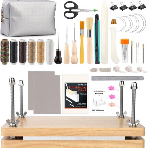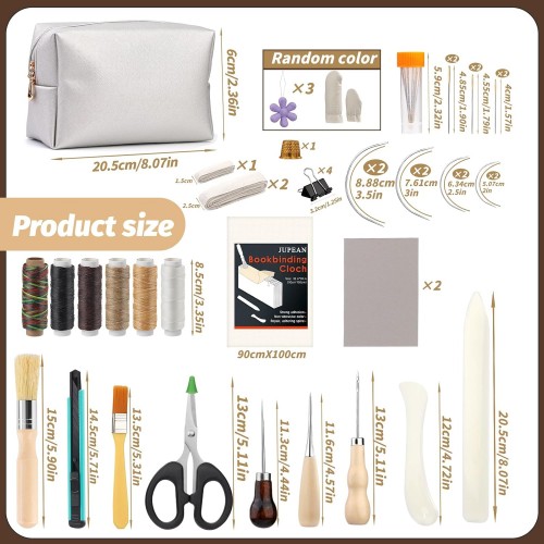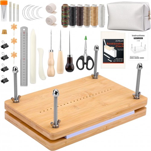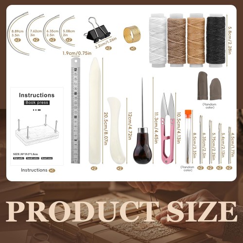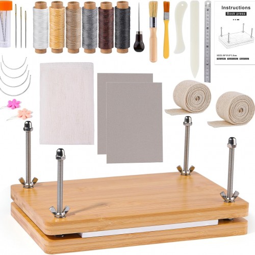 - Usful Book Binding Materials: Bookbinding Tools include book cloths for repairing old books and reinforcing books before they break, binding strap for book binding to make the sheets stronger between each other, and can be cut to fit the size of your project. A variety of waxed threads(about 98 feet long) and a variety of needles extend sewing life, and an awl makes precise holes for easy threading and efficient sewing.