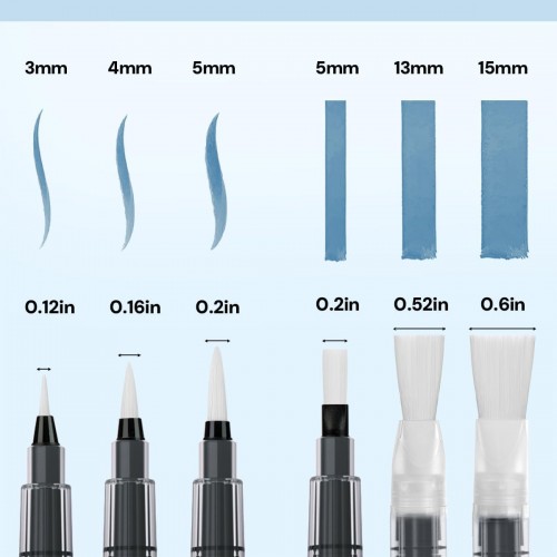 - 【Dual-Tip Water Brush Pens for Every Art Need】Portable watercolor brush pen set with 3 sizes (S/M/L) of both pointed and flat tips. The fine tips create precise lines for details, while the flat tips deliver bold strokes and smooth washes. Ideal for watercolor techniques, calligraphy, and mixed media applications
