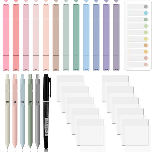 - Daily Use: aesthetic school supplies are suitable for everyday use, including 12 highlighters, 5 ballpoint pens, diverse colors, 1 black pencil pouch, 1 marker pen, 10 pads of square sticky notes (500 sheets), 1 pad of sticky index tabs (200 sheets), gratifying your daily use and replacement demands for journal, notepad, work, study notes, bible study available for family, office, travel and so on