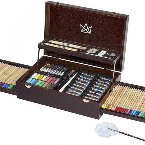 - MIXED MEDIA – Explore the creative possibilities with this curated set of watercolor and acrylic paints, soft and oil pastels, drawing pencils and various tools presented in a beautiful beautiful wood storage box. Sure to be appreciated by art loving teens and adults of all skill levels.