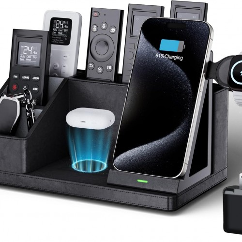 KINGFOM Leather Desk Organizer with Charging Station Multi-Functional Phone Pen Pencil Holder for Desk Desk Organizers and Accessories for Office Home Supplies (L)