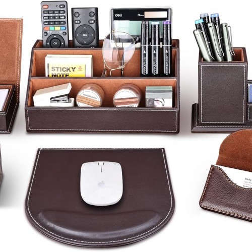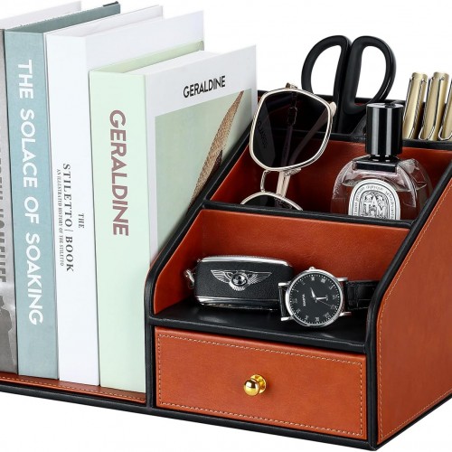 KINGFOM Leather Desk Organizer with Charging Station Multi-Functional Phone Pen Pencil Holder for Desk Desk Organizers and Accessories for Office Home Supplies (S)