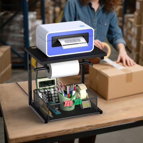 - ALL-IN-ONE DESIGN: Our label roll holder accommodates both thermal label printers and label rolls. The top shelf has holes on both sides to neatly hide the power cord. The bottom drawer is designed to be flexible, not only for storing printed labels, pens and other small items, but also for being pulled out and used individually as a desktop organizer for small office items