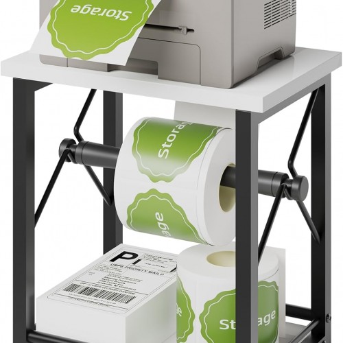 Label Holder for Rolls and Fan-fold Labels, Wooden Label Stand for Shipping Label Printer, Sticker Roll Holder Thermal Printer Accessory for Home, Office (Black)