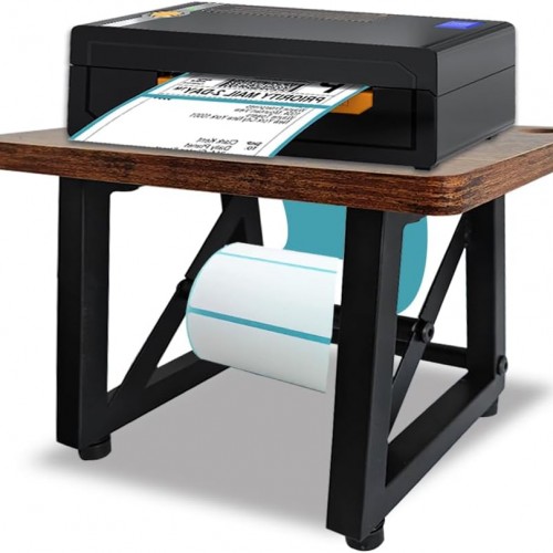 Label Holder for Thermal Printer,Sticker Rolls and Fan-fold Dispenser Holder,Wooden Label Holder for Shipping Label Printer,Office Accessories for Home,Small Business,Warehouse (Log Color)