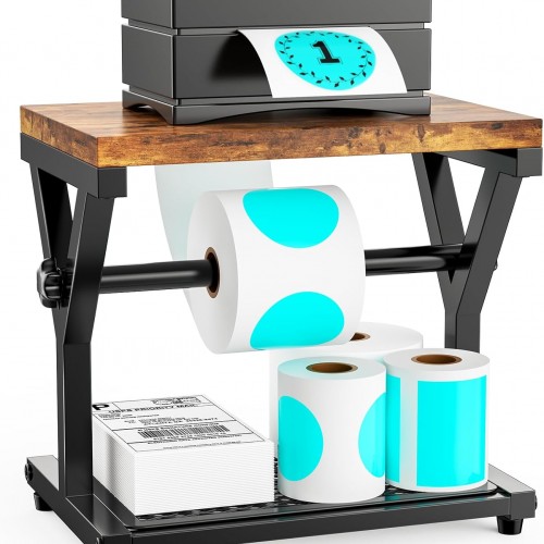 - All-in-One Label Holder: The XINQIDAI label stand accommodates both printers and labels. The top tier features slots on both sides for concealing power cords, while the lower tier includes a metal rod for mounting label rolls. Ensures an organized workspace.The length of the product pole is sufficient, the side bracket is installed against the inside, please install correctly!