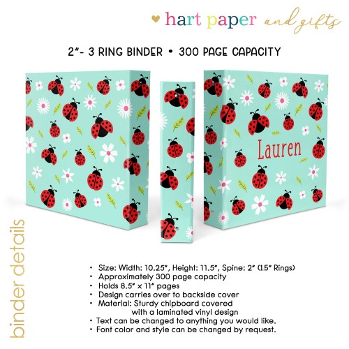 Ladybug Personalized Custom 2″ 3 Ring Binder • School Office Supplies