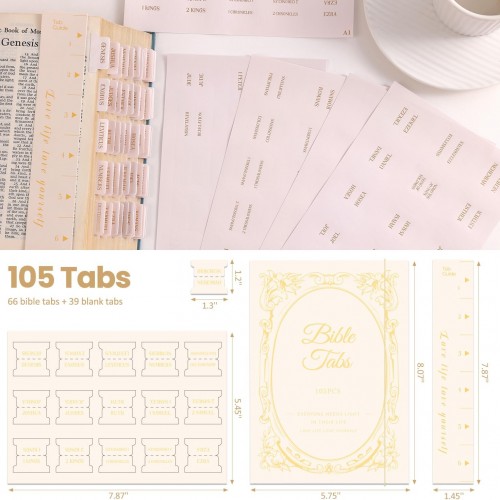 - Complete Scripture Organization System: Navigate the Word with effortless grace and precision. This comprehensive set includes 66 pre-printed tabs (39 for the Old Testament, 27 for the New Testament) for instant access to every book. Plus, 39 blank, write-on DIY tabs provide the freedom to personalize and mark your own meaningful verses, prayers, and study notes.