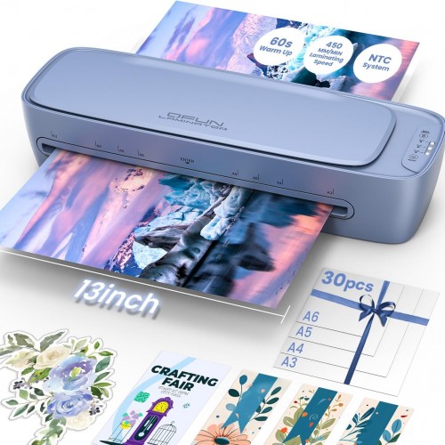 - 2025 New Upgraded 9-in-1 Lamination Machine: Crafted with high-molecular construction materials for unparalleled durability, our QFUN laminator comes in cool colors that make it a stylish addition to your studio. Dive into endless possibilities with our thermal laminator, which includes a built-in 1*paper cutter, 1*corner rounder, 1*hole punch, 3*binder rings, and 30 sheets of 3 mil laminating paper (including 3A3, 9A4, 9A5, 9A6). Everything you need to kickstart your laminating journey is right here