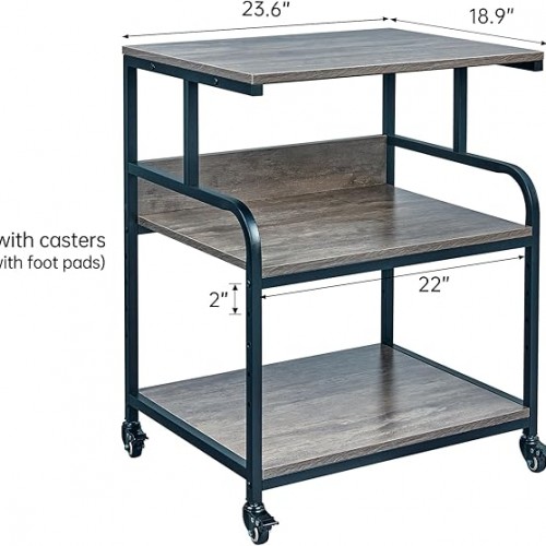 - 【Industrial Grade Casters】Featuring upgraded industrial-grade wheels, this printer cart glides effortlessly even when fully loaded. With all four wheels lockable, the cart can be secured in place firmly. Alternatively, just opt for the included foot pads to keep the stand stationary for complete steadiness. These foot pads can be fine-tuned to prevent wobbling on uneven surfaces, guaranteeing a stable and secure stand.