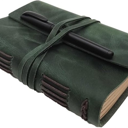 Leather Journal Writing Notebook – Genuine Leather Bound Daily Notepad for Men & Women Lined Paper 240 Kraft Pages, Handmade, Rustic Brown, 5 x 7 in