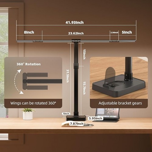 LED Desk Lamp for Home Office – 24W Bright Double Head Desk Light with Clamp Eye Caring Architect Task Light 25 Lighting Modes Adjustable Flexible Gooseneck Lamp (All Black)
