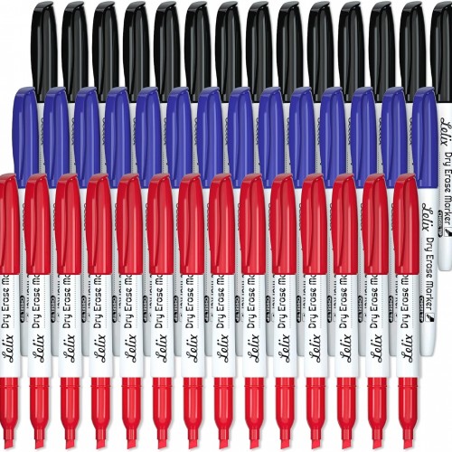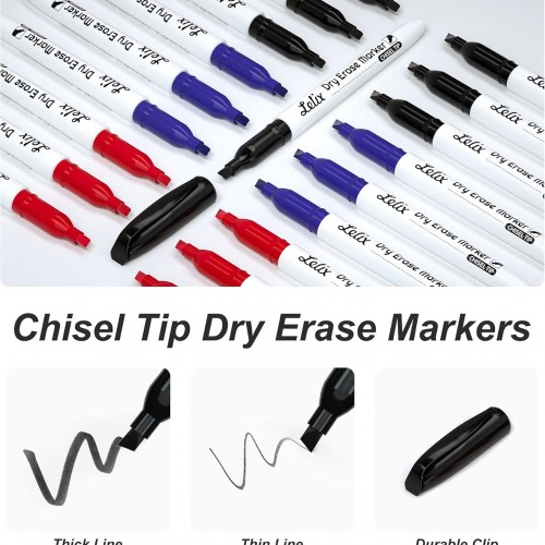 Lelix Dry Erase Markers, 42 Pack 14 Black+14 Blue+14Red Dry Erase Markers Chisel Tip,Dry Erase Markers Bulk,Whiteboard Markers for School, Office Supplies,Perfect for White Board, Mirror,Calender