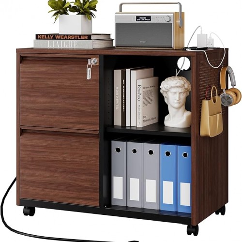 Letaya Mobile 2 Drawer File Cabinet with Lock, Metal Lateral Printer Stand Filing Storage Cabinets with Shelves for Home Office-A4/F4/Letter (Charging Socket)