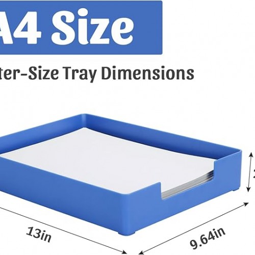 Letter-Size Tray Desk Letter Tray Paper Tray, Sturdy Heavy-Duty Plastic Printer Paper Tray, Single-Tier Stackable File Storage Organizer for Office Home (1, Blue)