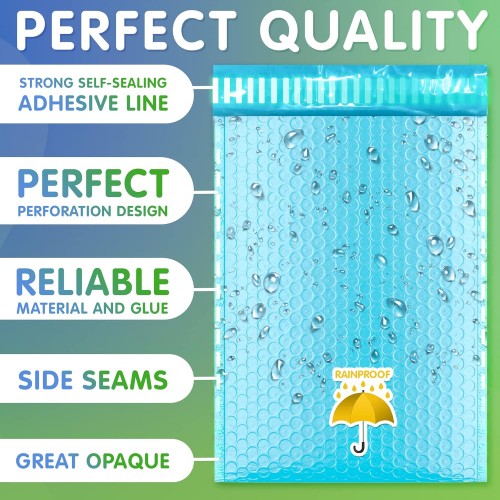 Light Blue Poly Bubble Mailers Self Seal, 5 x 9 Inch. Pack of 200 Bubble Packaging Envelopes for Shipping. Durable Padded Envelopes Waterproof. Self Seal Padded Mailers. Shipping Packages
