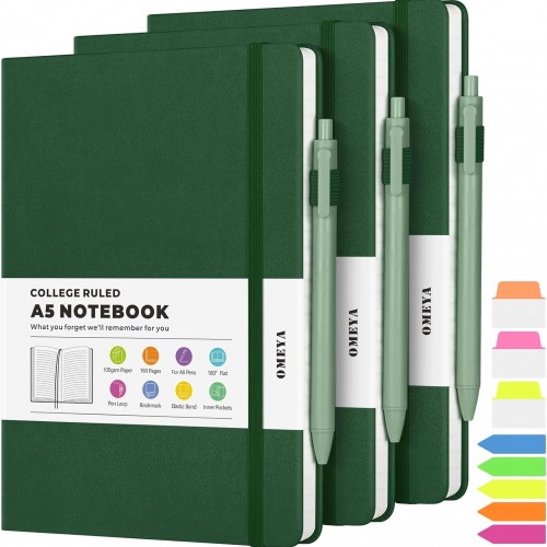 - 【Thoughtful Accessories】Our hard cover notebook comes with a range of practical accessories to enhance your writing experience. Each notebook includes 2 pockets, 2 bookmark ribbons, 1 elastic band, 1 pen loop. And as a bonus, each set of notebooks comes with 3 pens that match the color of the notebooks, along with 160 PCS colorful index & tabs stickers.