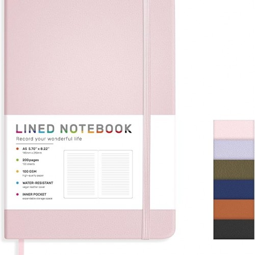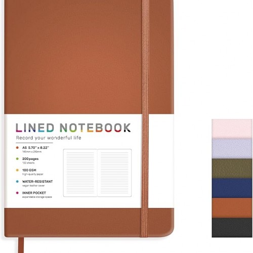 - 200 Pages A5 Notebook – This medium 5.7”×8.3” inches A5 lined journal notebook features a waterproof brown faux leather cover, 8mm space classic college ruled notebook, and a total of 200 pages. The professional, durable, water-resistant leather hard cover will protect your notebooks, which have oil-resistant and anti-bending properties, effectively protecting the internal paper of the journal and providing a comfortable writing surface.