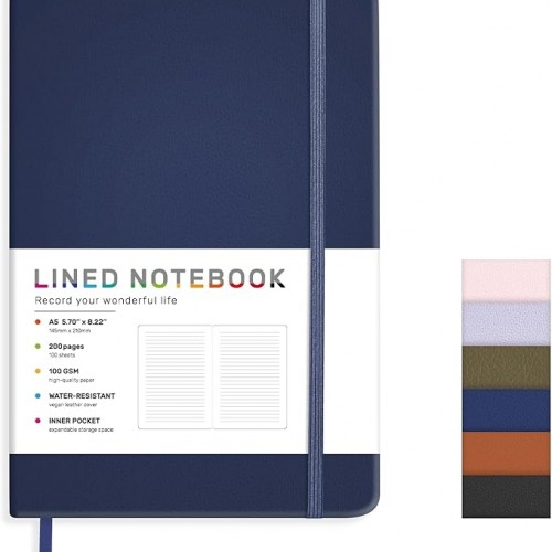 Lined Journal Notebook for Work, A5 Leather Notebook with Pen Holder, 100GSM/160 Pages Thick Paper, Daily Journals for Writing, School, Note Taking, Business, Travel, College Ruled