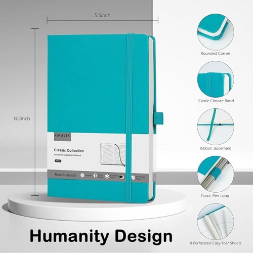 - 【Hardcover Notebook Journal】ONAVIA 5.5×8.3 inches standard lines notebook features a sturdy and durable hardcover, 80sheets, 160 pages, perfect as gift