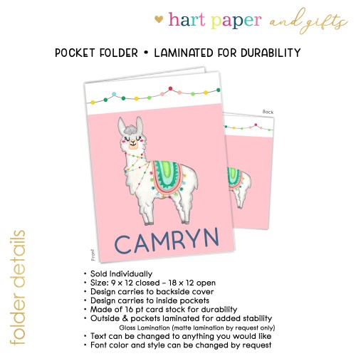 Llama Alpaca Personalized Custom 2-Pocket Folder • School Office Supplies 1 – 2Pocket Folder
