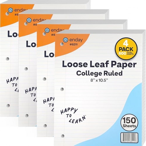 - ✓DESCRIPTION – The writing paper is college ruled and double-sided for plenty of note taking space. The pack contains 150 college ruled loose leaf paper per pack. The paper sheet is letter sized, 10.5” x 8”. The college ruled paper provides an ideal writing surface and is perfect for note taking, in-class assignments, homework, and more.