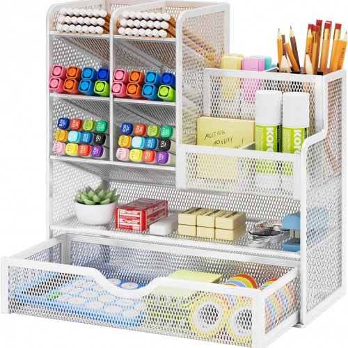 Ludato Desk Organizers Mesh Pencil Holder,3 Compartments Black Mesh Pen Holder Storage for Office Desk Accessories