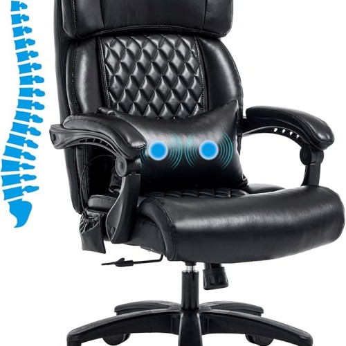 Lumbar Massage Office Chair, 500LBS Big and Tall Office Chair, Heavy Duty Ergonomic Executive Reclining Chair with High Back and Lumbar Support, Beige