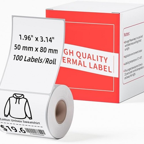 - Thermal label details: Ponek M100 labels measures 1.96” x 3.14” (50x80mm), only 1 paper roll in each box, 100 labels per roll. Suitable for applications requiring small to medium sized labels
