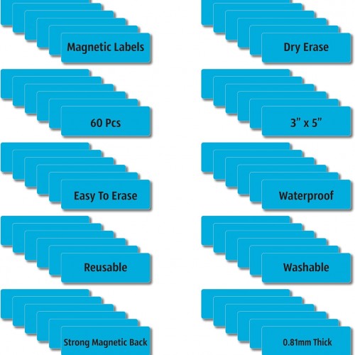 Magnetic Dry Erase Magnets Labels 3×1 inches, Reusable Name Tags, Organizing Schedules in Office/Classroom. Work on Fridge/White Board (Cyan 60Pcs)