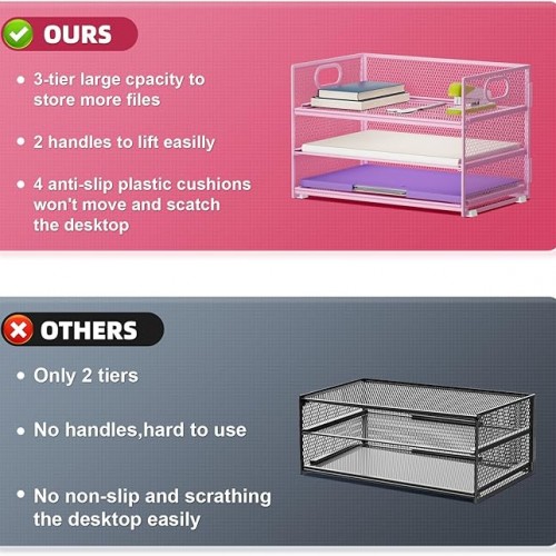 - 【MULTI-PURPOSE ORGANIZER】3-tier layered design and large capacity make the paper organizer become an ideal choice for managing all kinds of letter-size letters, paper, books, bills, etc. Let you quickly identify the contents of each compartment super easy!