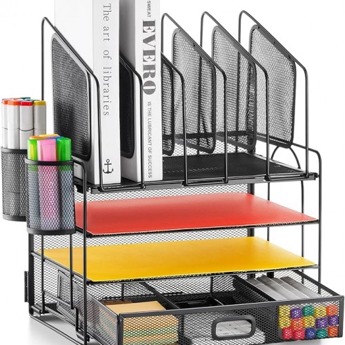 - 【High-quality Materials】The mesh desktop file organizer is made of lightweight and durable metal mesh, reinforced with a sturdy steel frame, and the outer layer is epoxy-coated, rust-proof and very durable, with long-lasting strength and reliable performance.