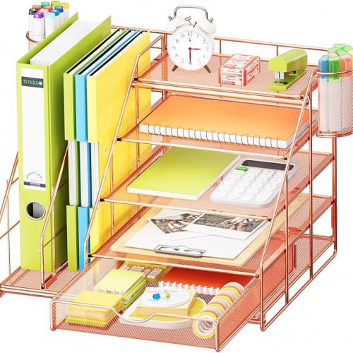 - 【Ideal Desk Organizer】Marbrasse newly releases the desk file organizer! The humanized office organization owns 5 sliding trays + 2 Magazine Holders + 2 Hanging Pencil Holders + 1 sliding drawer which tidies up your desktop and is convenient to your office! All the designs specialized to comply with your office, such a perfect supplies desk organizer must be the best choice for your office accessories!