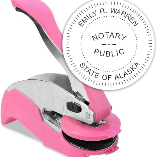 MaxMark Notary Seal Round Pink Embosser for Maine State – Includes Gold Burst Seal Labels (50 Count)