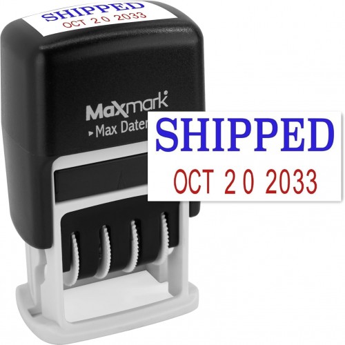 MaxMark Self-Inking Rubber Date Office Stamp with Scanned Phrase & Date – RED Ink (Max Dater II), 12-Year Band