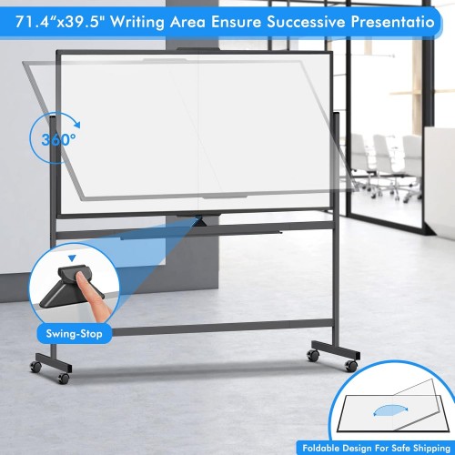 - Customer-friendly Design: we improved the mobile whiteboard design by folding it to to make it 50% smaller, significantly reducing the risk of shipping damage. Also, the high-end three-layered baking whiteboard comes with solid surface, anti-scrap and easily dry wipe with any dry erasers. It reflects softly and does not dazzle brightly, helping you perform better on business presentation, teaching or training