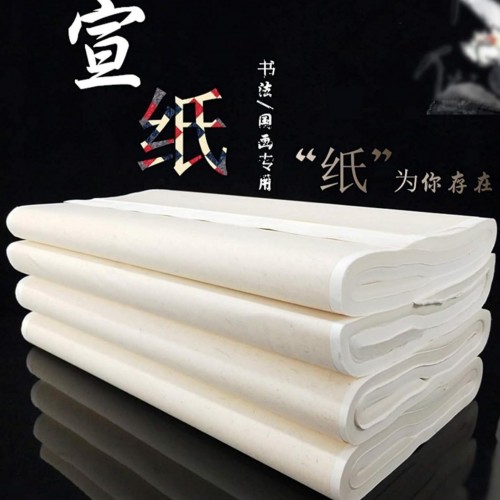 MEGREZ Chinese Japanese Calligraphy Xuan Paper, Rice Paper Sumi Calligraphy Paper for Calligraphy Brush Ink Writing, Painting Without Grids 100 Sheets/Bag,13.4 x 13.4inch, Sheng (Raw) Xuan