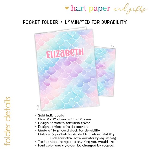 Mermaid Rainbow Scales Personalized Custom 2-Pocket Folder • School Office Supplies 1 – 2Pocket Folder