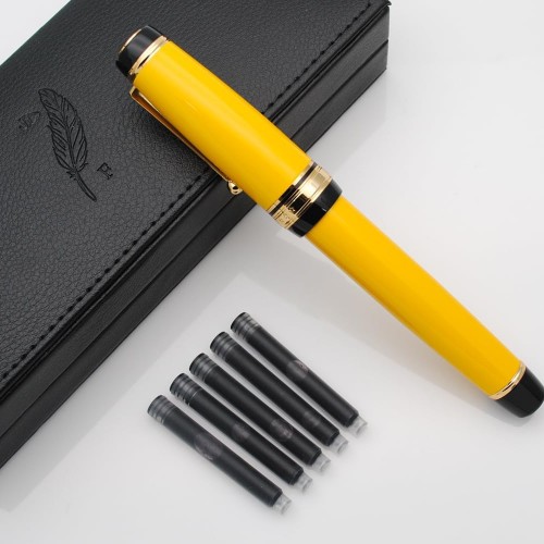 Metal Big Fountain Pen Set Medium Nib 0.7mm, Includes Ink Refill Converter, 5 Ink Cartridges & Gift Box (Medium Nib 0.7mm, Yellow)