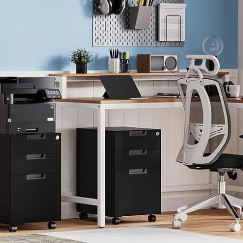 MIIIKO 3 Drawer Filing Cabinet with Lock, Metal Black Vertical File Cabinets for Home Office, Full Assembled File Cabinets Under Desk, Letter/Legal/A4 File Folders Storage