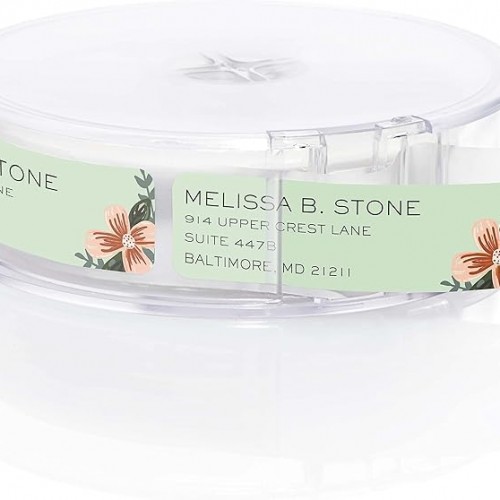 Mint and Pink Floral Rolled Address Labels/Roll of 250 Personalized Return Address Labels/Designer Return Address Stickers in Elegant Plastic Dispenser