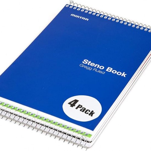 Mintra Office Steno Books – (Primary 4PK, Green Tint Paper, Gregg Ruled) – 6inx9in, 70 Sheets