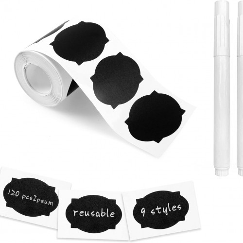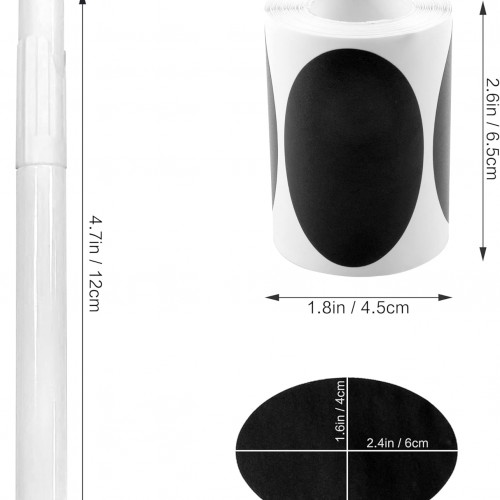 MUWOOB Chalkboard Labels, 120 Pcs Black Reusable Waterproof Labels Stickers with 2 White Chalk Markers, Kitchen Pantry Sticker Labels for Containers, Mason Jars, Condiments, Food Storage (Oval Shape)