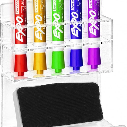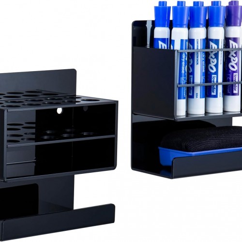 MyGift Dry Erase Marker Holder 10 Slots Whiteboard Marker Holder For Wall Dry Erase Eraser Holder Wall Mount White