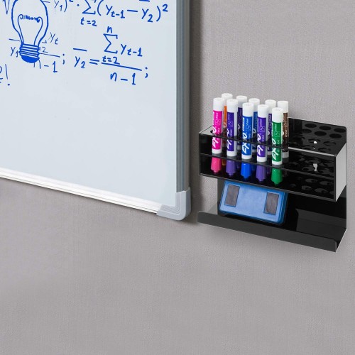 - Get organized with 2.5 inches of storage of capacity for dry erase markers, pens, eraser and other small office necessities
