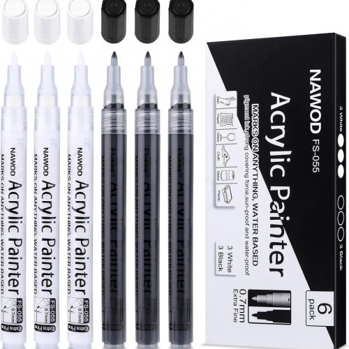 NAWOD 6 Gold and Silver Acrylic Paint Pens Markers, with Fine Tip and Medium Tip, for Rock Painting, Fabric, Canvas, Glass, Wood, Paper, DIY, Ceramic, Paint Markers for Kids and Adults