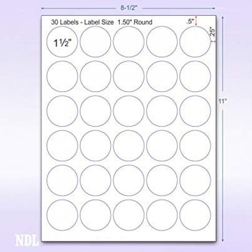 - Size : 1.5″ Round – 30 Per Page | 3000 Labels