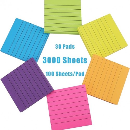 - Perfect Lined Design & Value Set: 3×3 inch lined sticky notes with ruled lines for neat writing and efficient organization. Each pack includes 30 pads of 100 sheets each, totaling 3000 sheets, perfect for daily reminders and busy schedules.